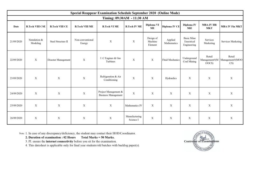 All Sem (Except II sem )Reappear Datesheet Sept 2020 17/09/2020 1000 × 707 All Sem (Except II sem )Reappear Datesheet Sept 2020