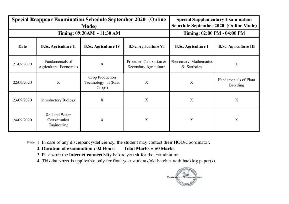 B.Sc. Agriculture Supple & Reappear Datesheet Sept 2020-page-001 23/09/2020 1000 × 707 B.Sc. Agriculture Supple & Reappear Datesheet Sept 2020-page-001
