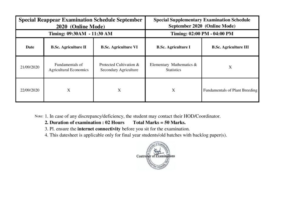 B.Sc. Agriculture Supple & Reappear Datesheet Sept 2020-page-001 17/09/2020 1000 × 707 B.Sc. Agriculture Supple & Reappear Datesheet Sept 2020-page-001