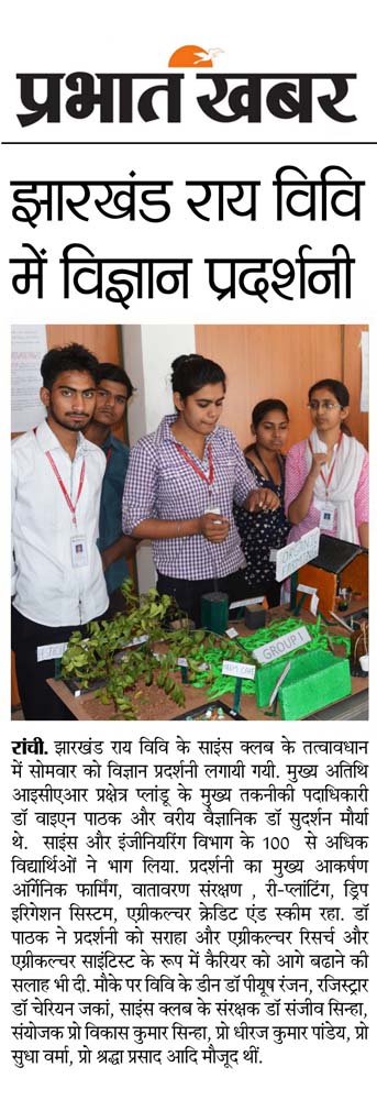 Press Coverage-The Science Exhibition (2016) - Jharkhand Rai University (JRU), Ranchi