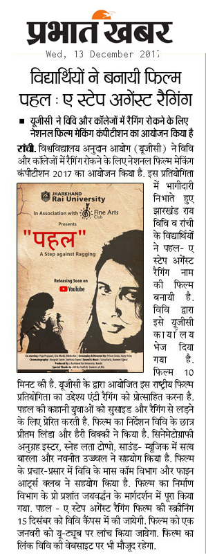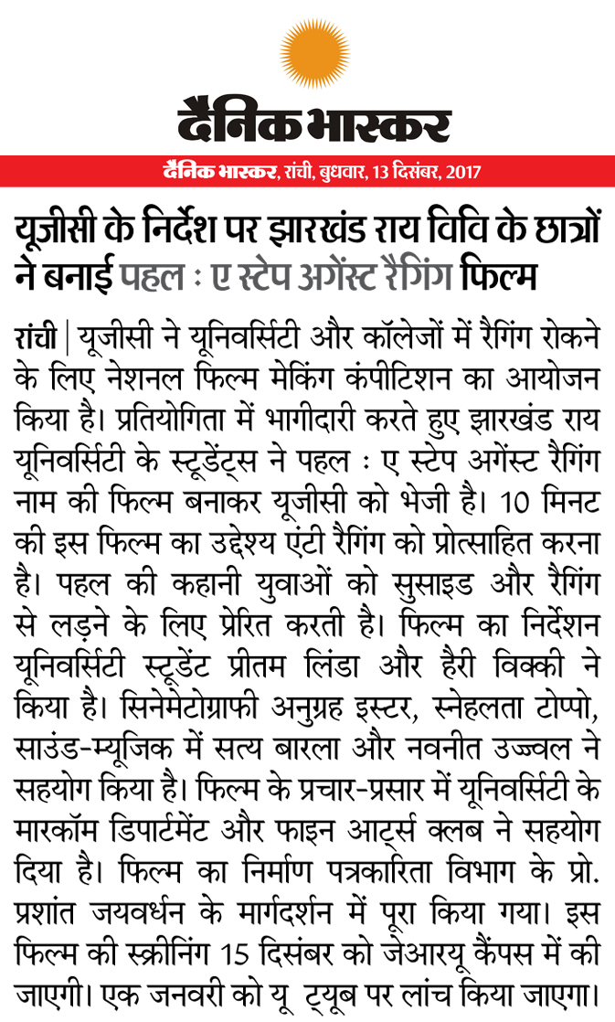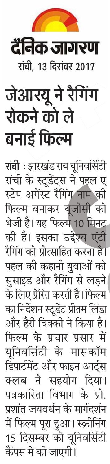 Press Coverage of the Movie made by JRU students in association with MARCOM, Fine Arts Club & Deptt. Of JMC.
