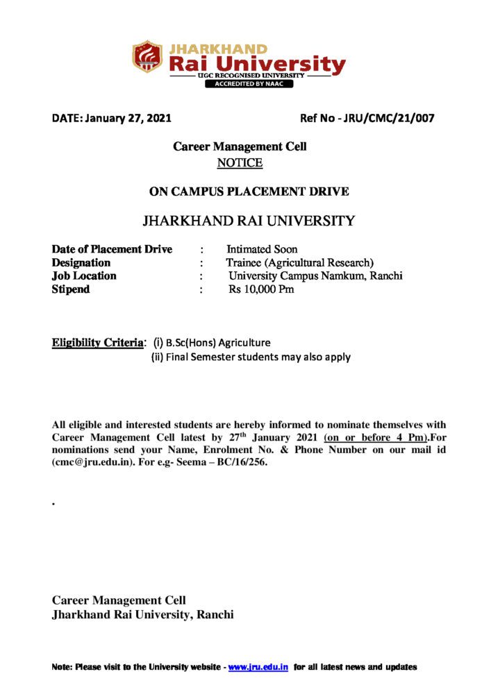CMC-21-007 JRU Agri_01 - Jharkhand Rai University (JRU), Ranchi