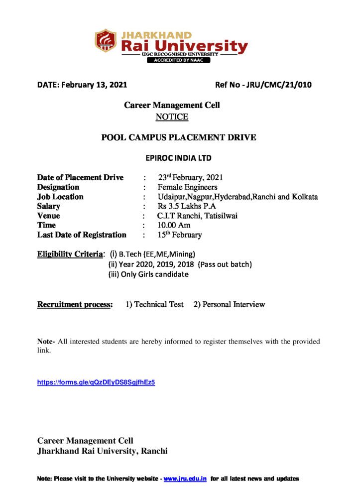 CMC-21-010 EPIROC INDIA LTD_01 - Jharkhand Rai University (JRU), Ranchi