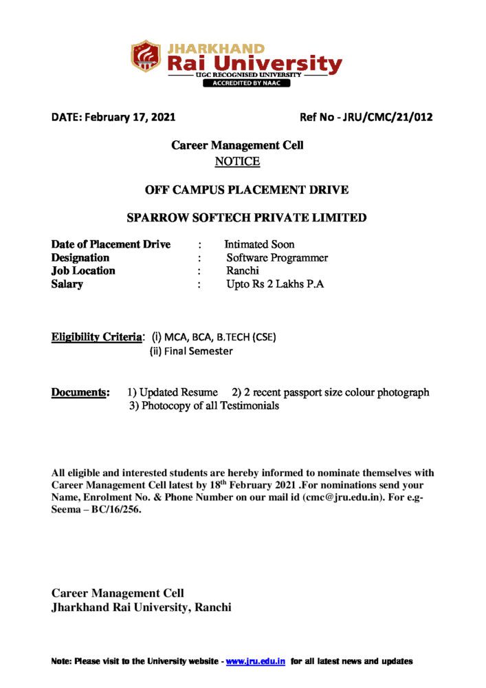 CMC-21-012 SPARROW_01 - Jharkhand Rai University (JRU), Ranchi