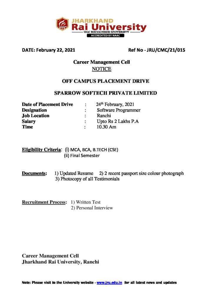 CMC-21-015 SPARROW -revised_01 - Jharkhand Rai University (JRU), Ranchi