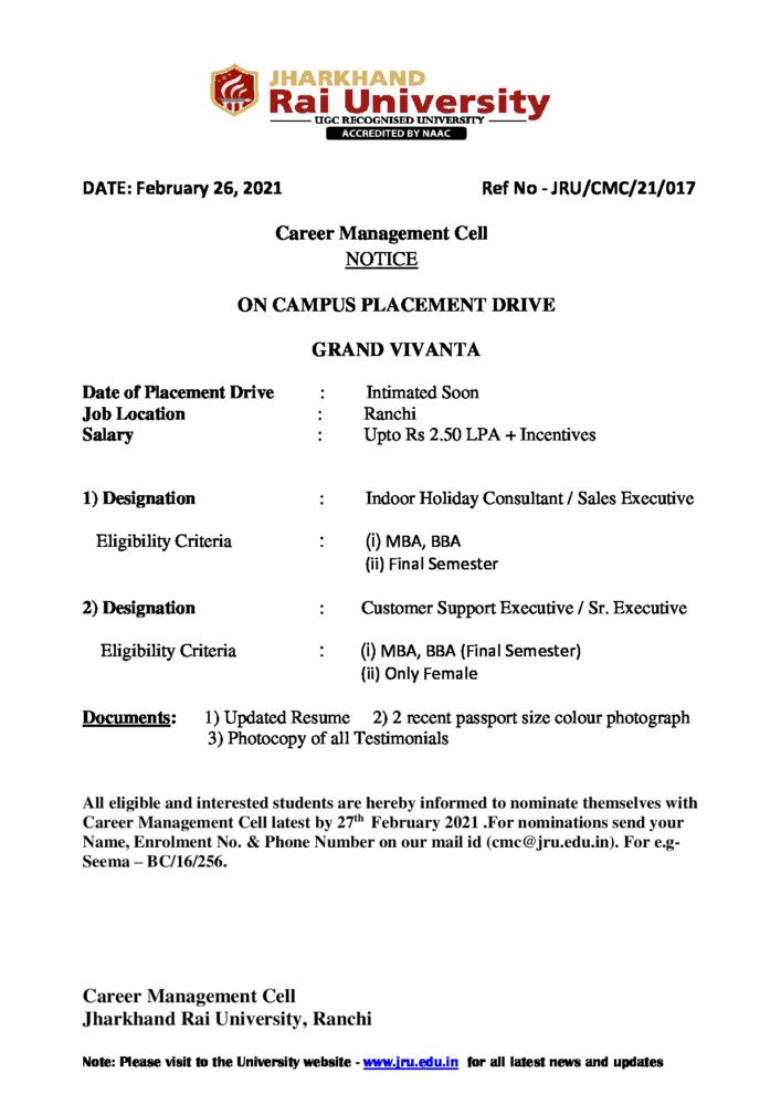 CMC-21-17 GRAND VIVANTA_01 - Jharkhand Rai University (JRU), Ranchi