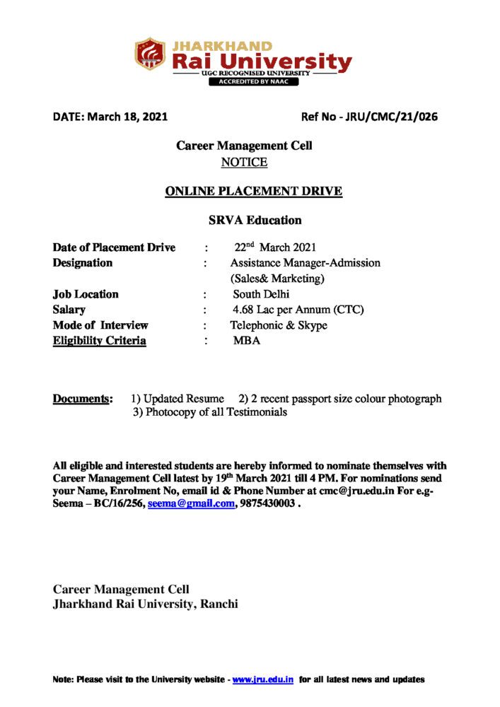 CMC-21-26 Srva Education_01 - Jharkhand Rai University (JRU), Ranchi