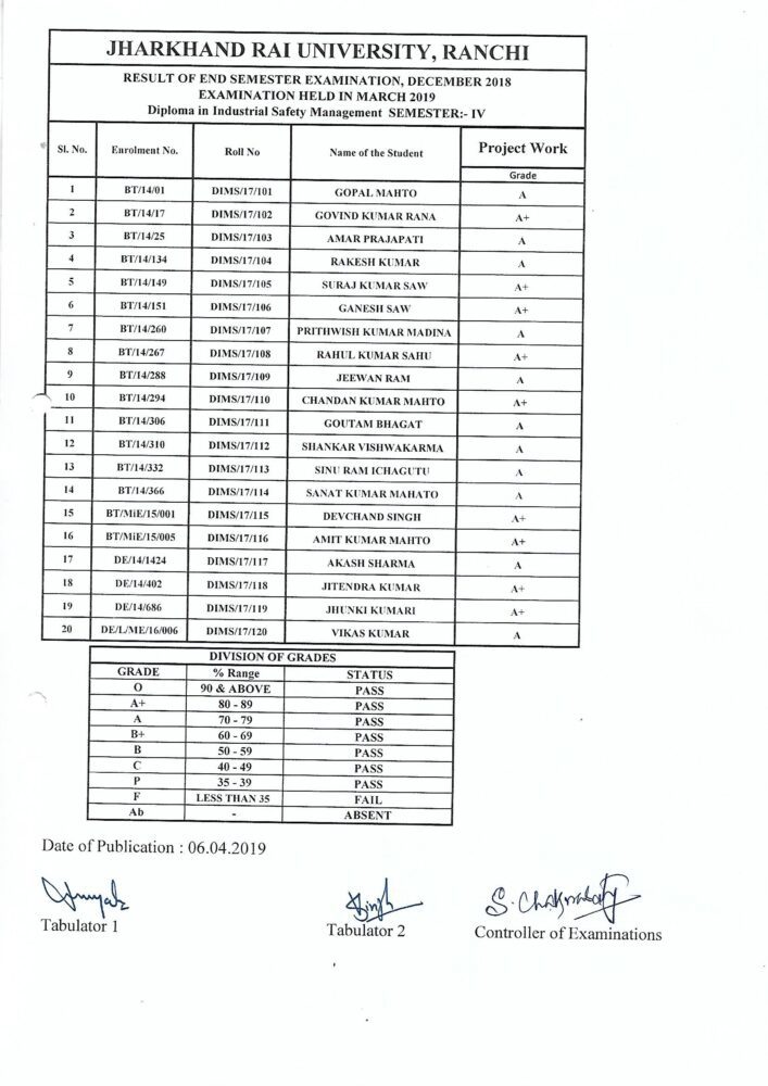 Diploma in Industrial Sefety Management IV SEM - Jharkhand Rai University (JRU), Ranchi