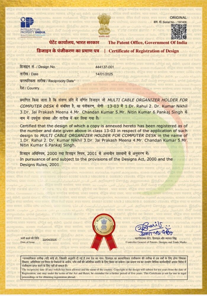 Dr. Jai Prakash Meena Department of Mining Engineering Multi Cable Organizer Holder For Computer