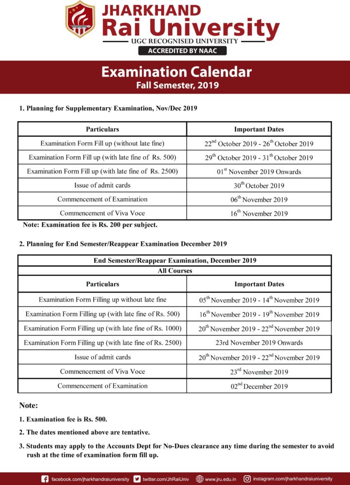 Exam calander 2019 - Jharkhand Rai University (JRU), Ranchi