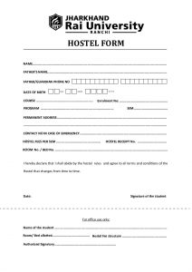 HOSTEL FORM JRU 2023 updated - Jharkhand Rai University (JRU), Ranchi