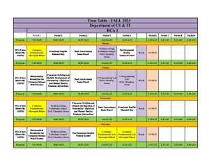 Time Table - BCA Ist Sem - Jharkhand Rai University (JRU), Ranchi