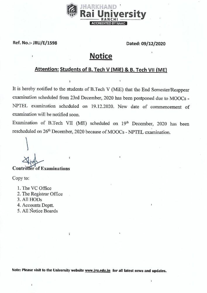Notice 1598 Dec. 2020 - Jharkhand Rai University (JRU), Ranchi