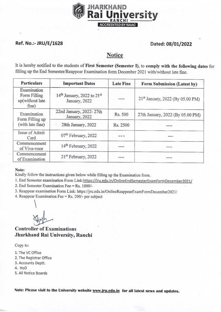 Notice 1628 - Jharkhand Rai University (JRU), Ranchi
