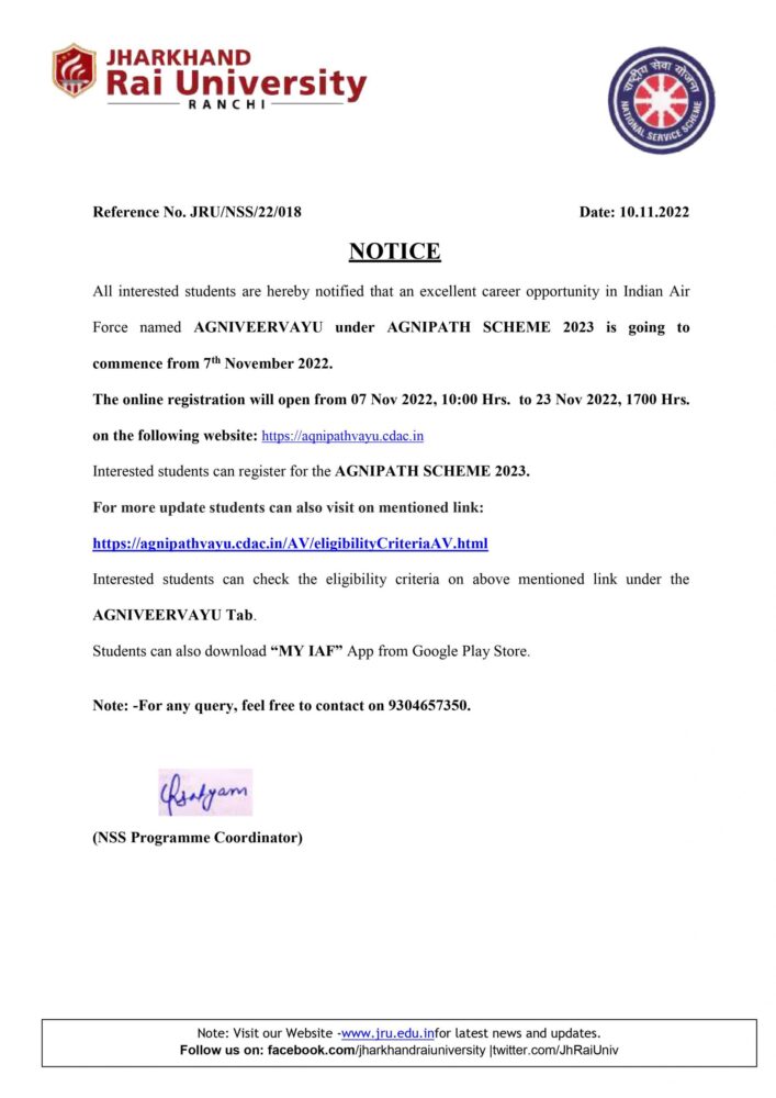 Notice 18 - Jharkhand Rai University (JRU), Ranchi