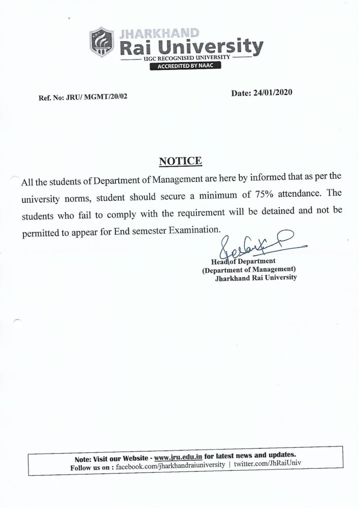 Notice 2 - Jharkhand Rai University (JRU), Ranchi
