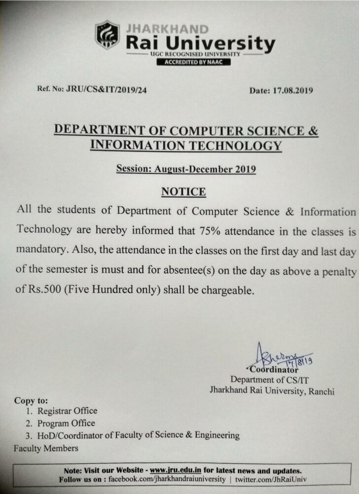 notice CSIT - Jharkhand Rai University (JRU), Ranchi