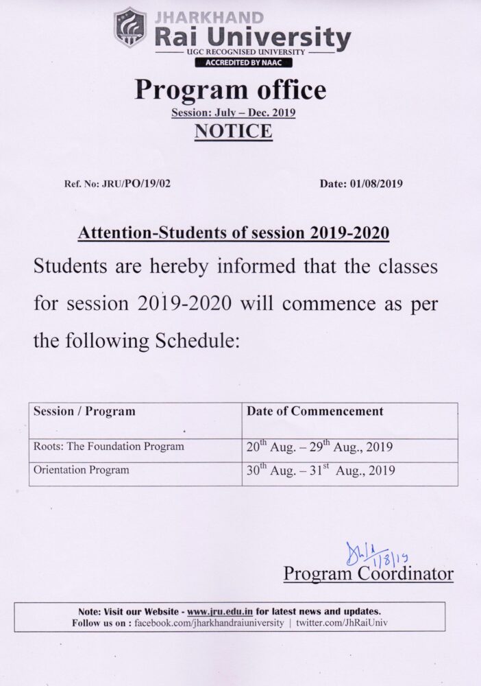 notice for new batches - Jharkhand Rai University (JRU), Ranchi