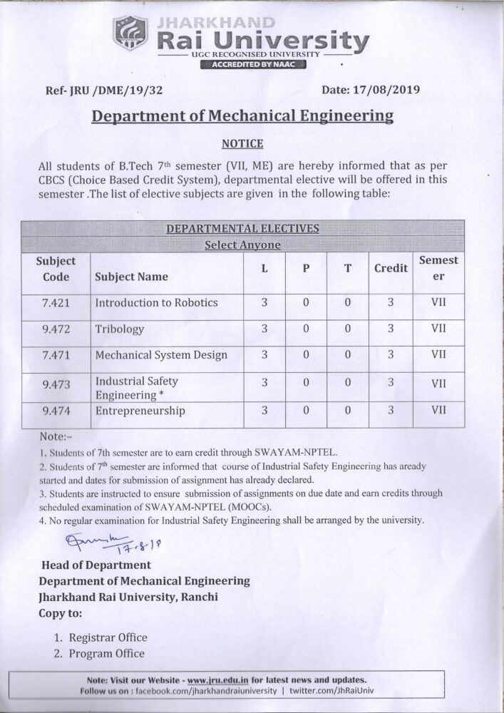 notice MECH 1 - Jharkhand Rai University (JRU), Ranchi