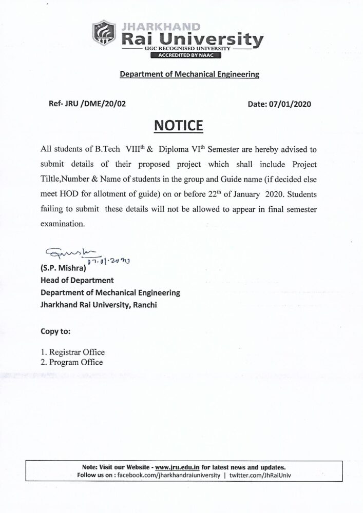 notice regarding filan year project - Jharkhand Rai University (JRU), Ranchi