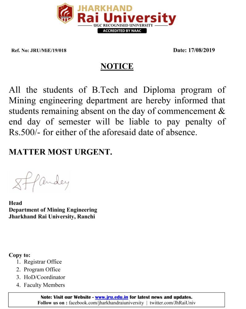notice regarding penalty - Jharkhand Rai University (JRU), Ranchi