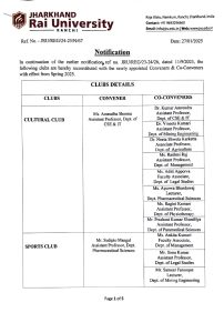 Club Notification - Jharkhand Rai University (JRU), Ranchi