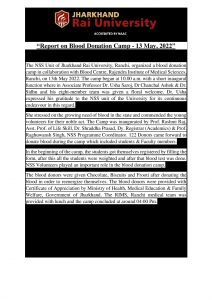 One day Blood Donation Camp on 13.05.2022 - Jharkhand Rai University (JRU), Ranchi