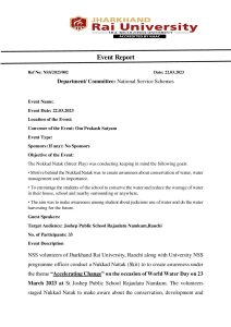 World Water Day_22.03.2023 - Jharkhand Rai University (JRU), Ranchi