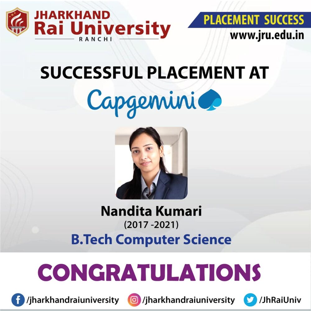 Placement Success Poster - Jharkhand Rai University (JRU), Ranchi