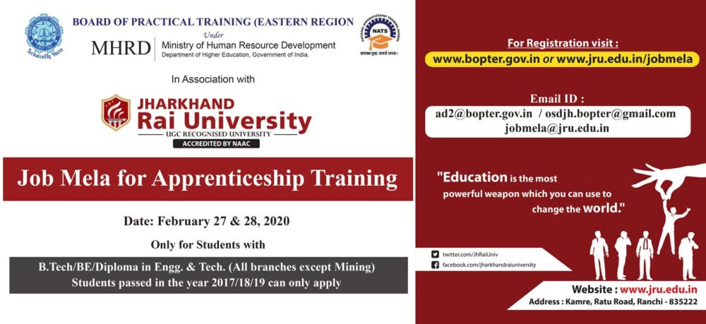 Slider BOPT 2020 - Jharkhand Rai University (JRU), Ranchi
