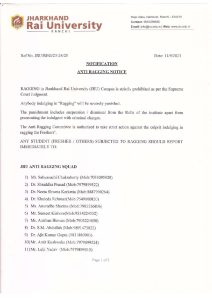 Anti Ragging Squad - Jharkhand Rai University (JRU), Ranchi